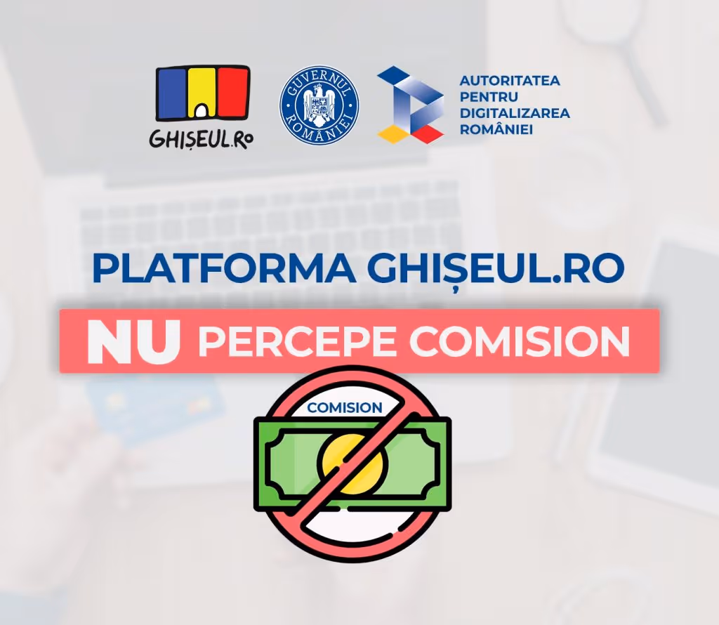 În contextul apariției și promovării în mediul online a mai multor platforme online care realizează plăți comisionate cu sume consistente, Autoritatea pentru Digitalizarea României revine cu precizări despre funcționarea Ghișeul.ro – Sistemul Naţional Electronic de Plată online cu zero comision pentru contribuabili.